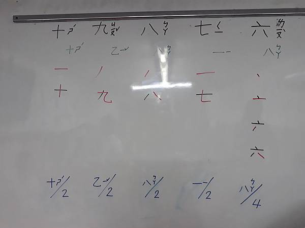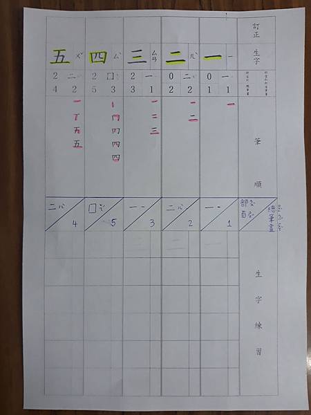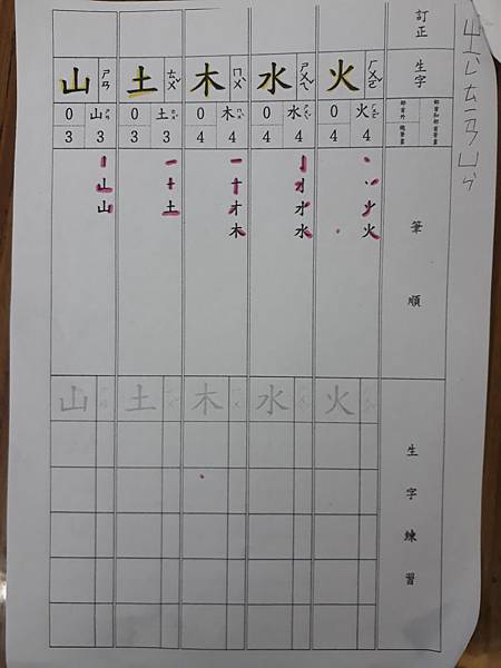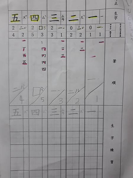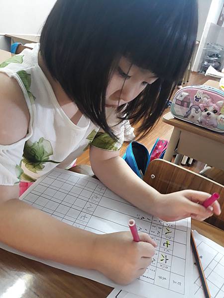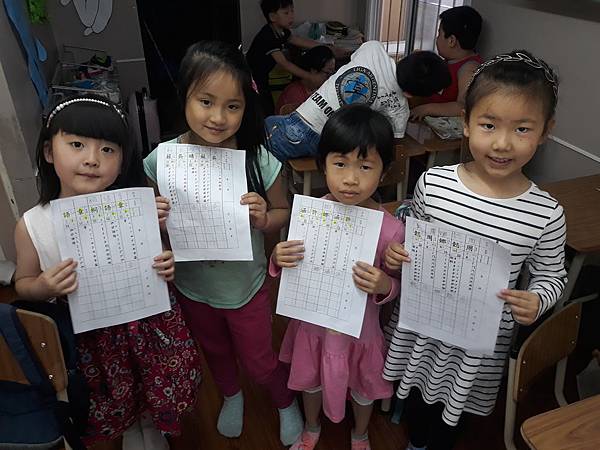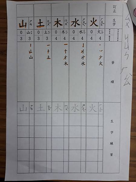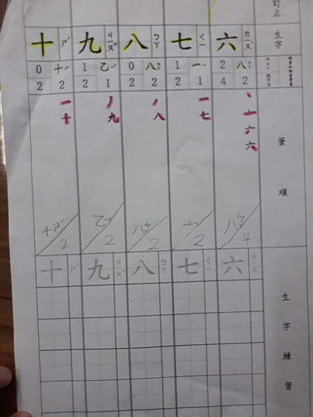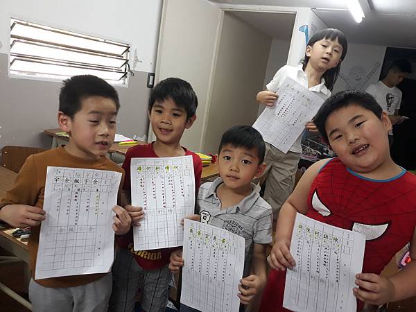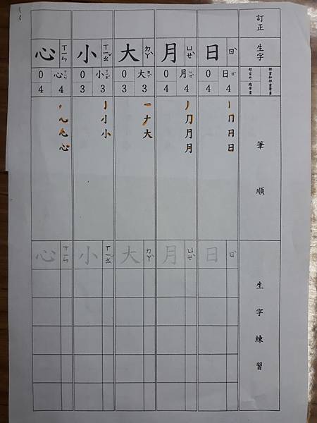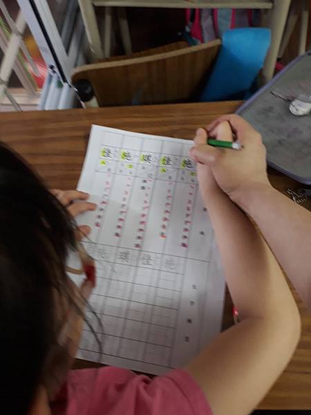 在第十七週起我們除了每週會重複複習所學過的全部拼音之外,我們學習國字筆順的筆劃。