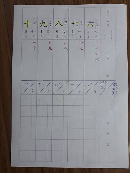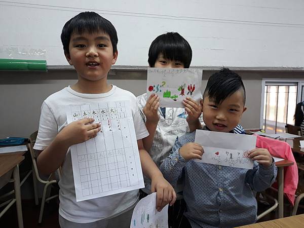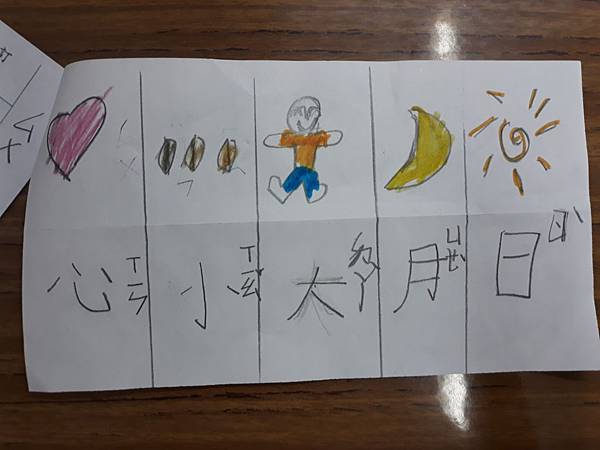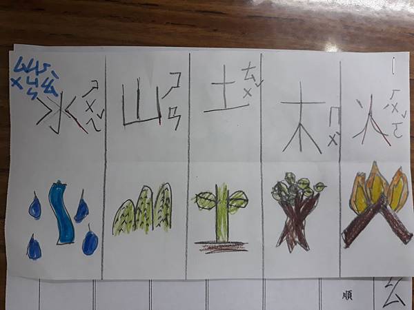 為了讓孩子在升上一年級能更快適應國字,老師特別從學習筆劃開始、國字一到十,接著再由象形